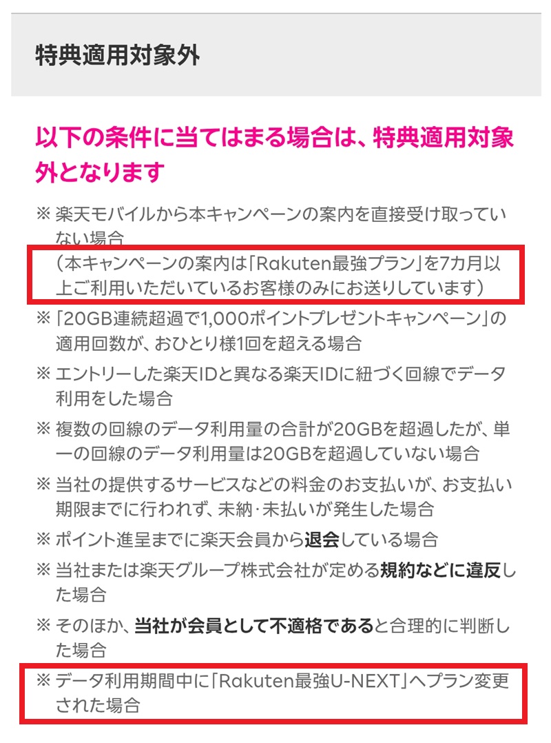 「Rakuten最強U-NEXT」へプラン変更は対象外
