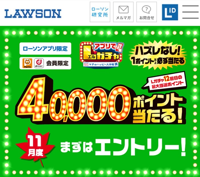 アプリで「Lガチャ」が11月度は10回→12回へ