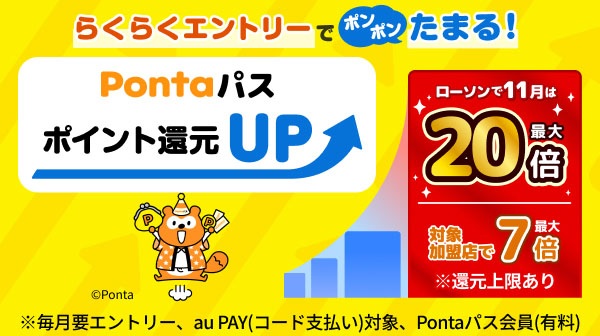 Pontaパス月額税込548円!2025年11月が凄すぎ!誰でもローソンでブースト過去最大の10%還元!
