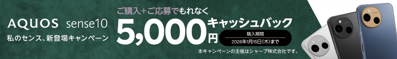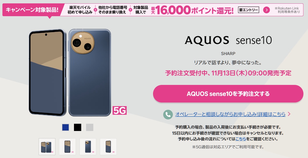 楽天モバイル「AQUOS sense10」本体税込59,900円!2025年11月13日発売開始!