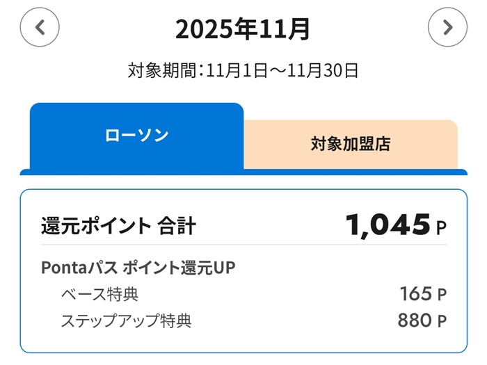 2025年11月度のPontaパス