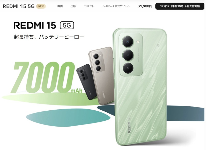 そして、2025年12月11日の本日、Xiaomiから「Redmi 15 5G」の日本向けの発売が発表された~!