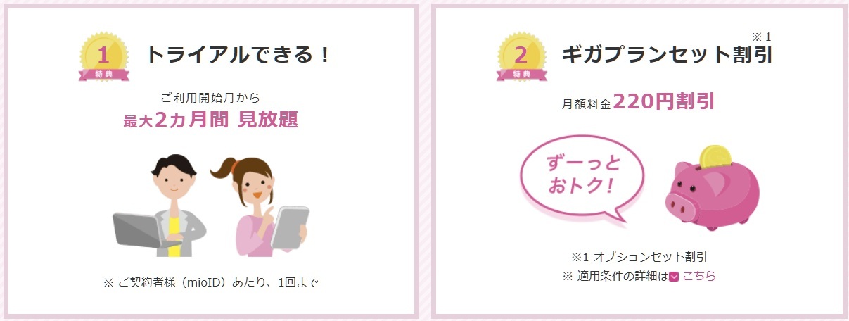 はじめの最大2カ月間無料+3~6か月目1,320円割引