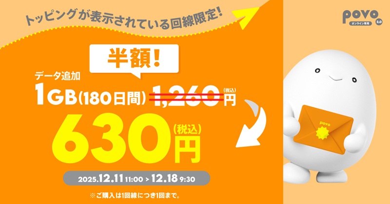 povo2.0 まとめ買い!2025年12月11日~12月25日まで