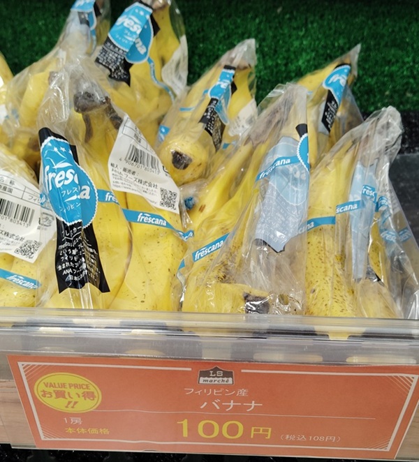 下見に行ったら、12月31日にすでに「フィリピン産バナナ」税込108円が開始していた~。「レモン」2個だって、税込108円になっている~!