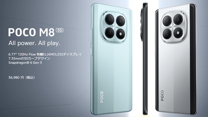 Xiaomi「POCO M8 5G」重さ178g!税込36,980円!2026年1月8日発売開始!