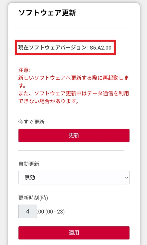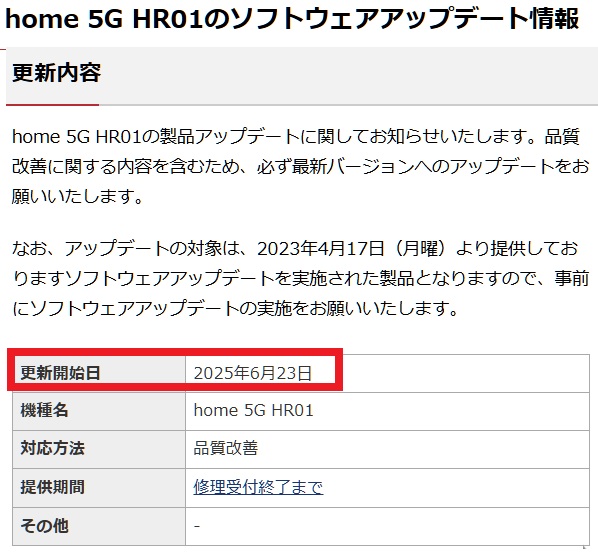 そして、今回、現行モデルの SHARP home 5G HR02のソフトウェアがアップデートされたので、更新をしてみた。