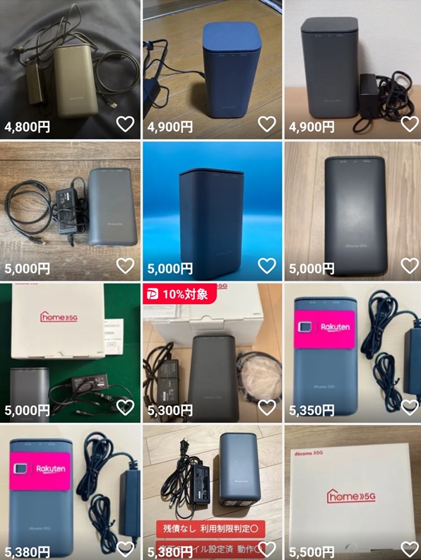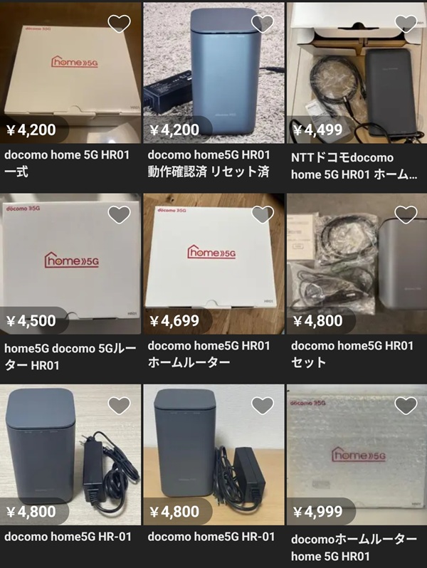 たまに、メルカリやヤフーフリマで中古相場をチェックしているが、最安3,000円超で出品されることもあるが、最近はhome 5G HR01の方が人気の様子で、中古相場5,000円前後へ値上げされている~!
