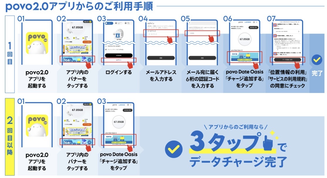 povo2.0 ローソン「povo Data Oasis」3タップ仕様へ変更!2026年1月16日開始!