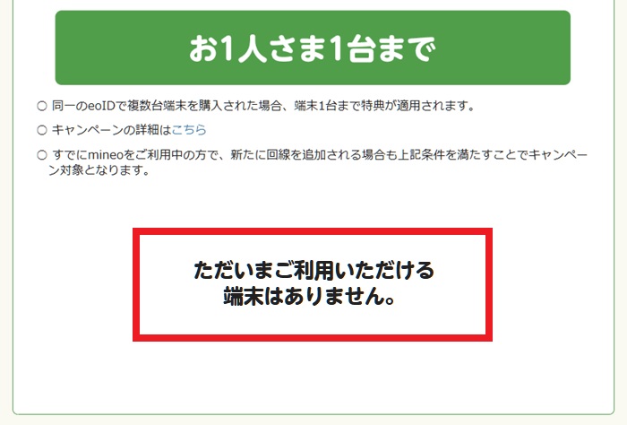 追記:何と!2026年3月12日現在、端末キャンペーンの在庫をチェックしてみたら・・・。
