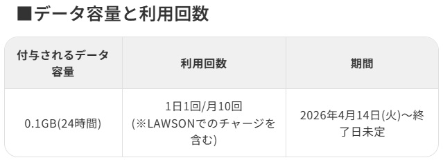 データ付与容量と利用回数の限度は共通仕様