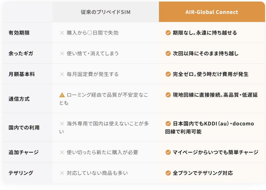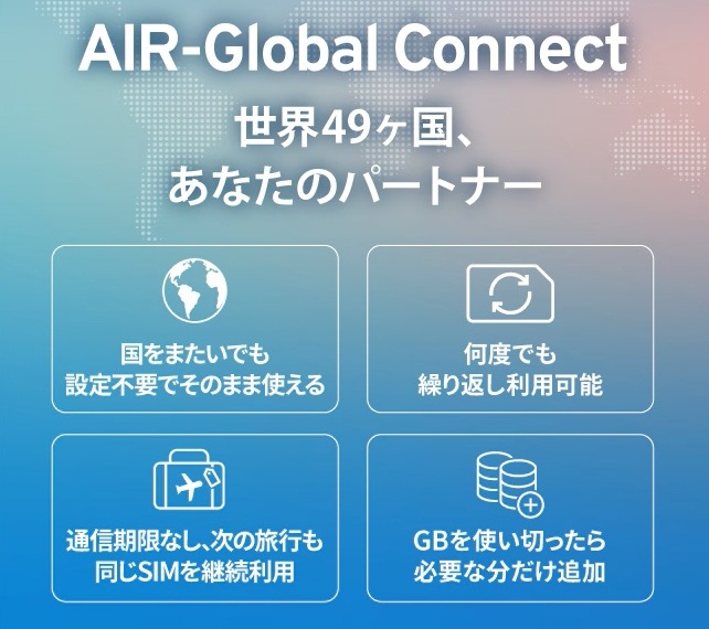 「AIR-Global Connect」で5GBギガタイプのスタンダードプランを所有するのもありかもしれない。だって、ギガは永久に保持されるから。普段は引き出しにしまっておいて、キャリアの通信障害の際に利用ができるとも訴求しているのだ。